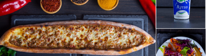 /Sumaklı soğan salatası, cacık, nar ekşili ezme salata, közlenmiş domates, közlenmiş biber, lavaş, fındık lahmacun ile/