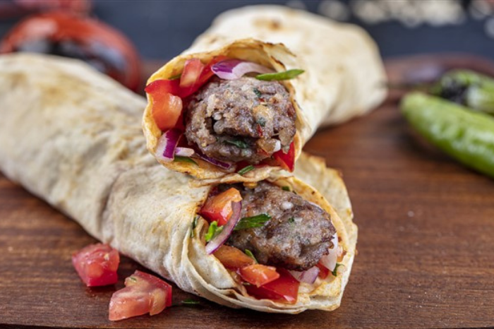 /Bulgur pilavı, ezme, soğan söğüş, közlenmiş domates, közlenmiş biber ile/₺ 50.00