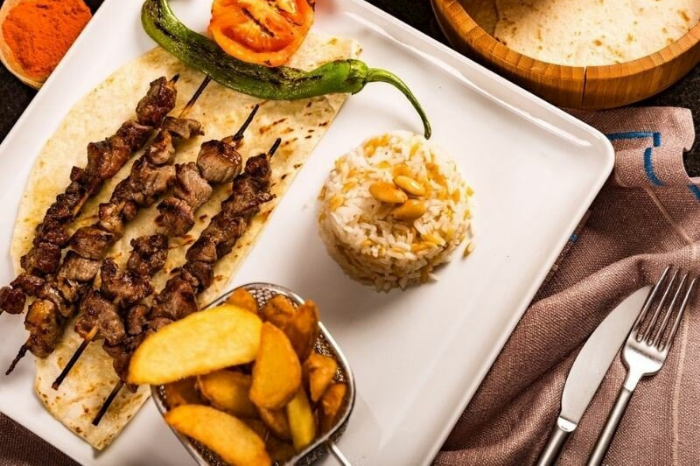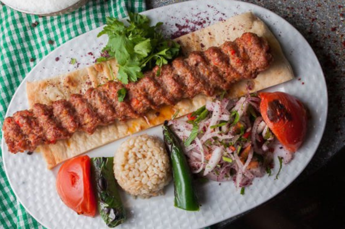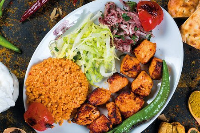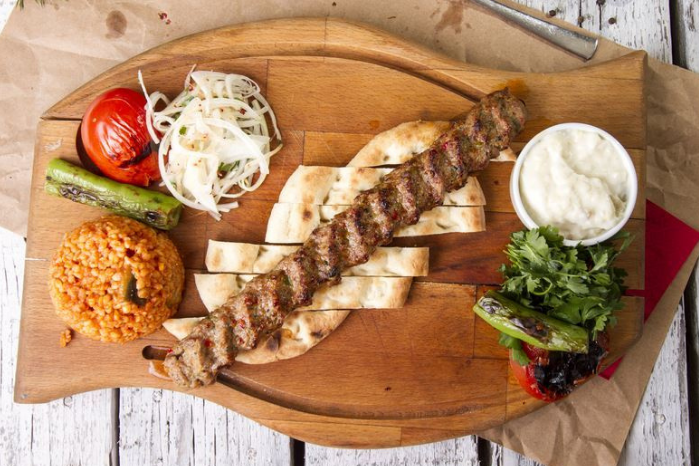 /Bulgur pilavı, ezme, soğan söğüş, közlenmiş domates, közlenmiş biber ile/₺ 66.00